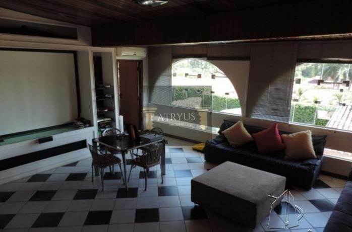 Casa Assobradada em Condomínio privilegiado, com sala 2 ambientes, sala de jantar, sala intíma, home theater, cozinha planejada, despensa, banheiro social, 4 dormitórios sendo 2 suítes com hidro e um "loft" com banheiro completo (hidro) 2 dormitórios e área de convivência, escritório, banheiro de empregada, área de serviço (lavanderia e passanderia ou quarto de empregada), canil e garagem para 5 carros sendo 2 cobertas. Acabamento Interno: Sala, cozinha e banheiros em piso cerâmico e dormitórios em piso laminado de madeira. Salas em pé direito duplo, teto em lambril de madeira, iluminação embutida. Cozinha planejada com revestimento, bancadas em granito. Quartos com armários modulados projetados, Aquecedor a Gás nos banheiros, instalação para ar condicionado em todos os quartos e home. Casa toda reformada há 5 anos com troca de todo material elétrico, hidráulico e acabamentos. Acabamento Externo: Piscina, espaço gourmet com churrasqueira e forno a lenha para pizza. Acessórios do Condomínio: Alarme, Interfone, Portaria, Churrasqueira, Quadra Poliesportiva, Lago, Cerca Elétrica, Salão de Festas e Câmera de Segurança. Área construída 380m² - terreno 600m²